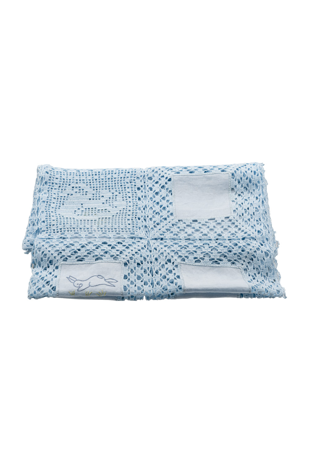 Cuscino con applicazione all'uncinetto fatto a mano col. blu €55,00 Iva inclusa
